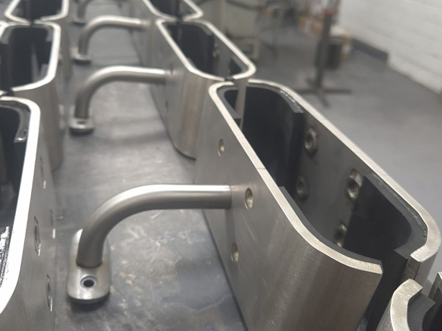 Situated next to our injection moulding and lighting assembly facility our engineering division manufactures handrails, fittings and bespoke components, all in stainless steel. Our factory in Somerset has the necessary skills, machinery and tooling to give you the quality and price you expect from a leading UK manufacturer. If you require a bespoke light for your project we have the skills for this including solid modelling, jig and tool design, precision machining and injection moulding; plastic or metal, LED / PCB design and testing. Our UK manufactured machining centres are of the latest design. TIG welding to British Standards for the welding and fabrication of stainless steel. We handle all polishing and surface finishing. With our new UK manufactured mandrel bender we are able to bend very small radiuses. Footfall Lighting Ltd is certified by a UKAS accredited Certification Body. Manufacturers of handrails, fittings and bespoke components, all in stainless steel